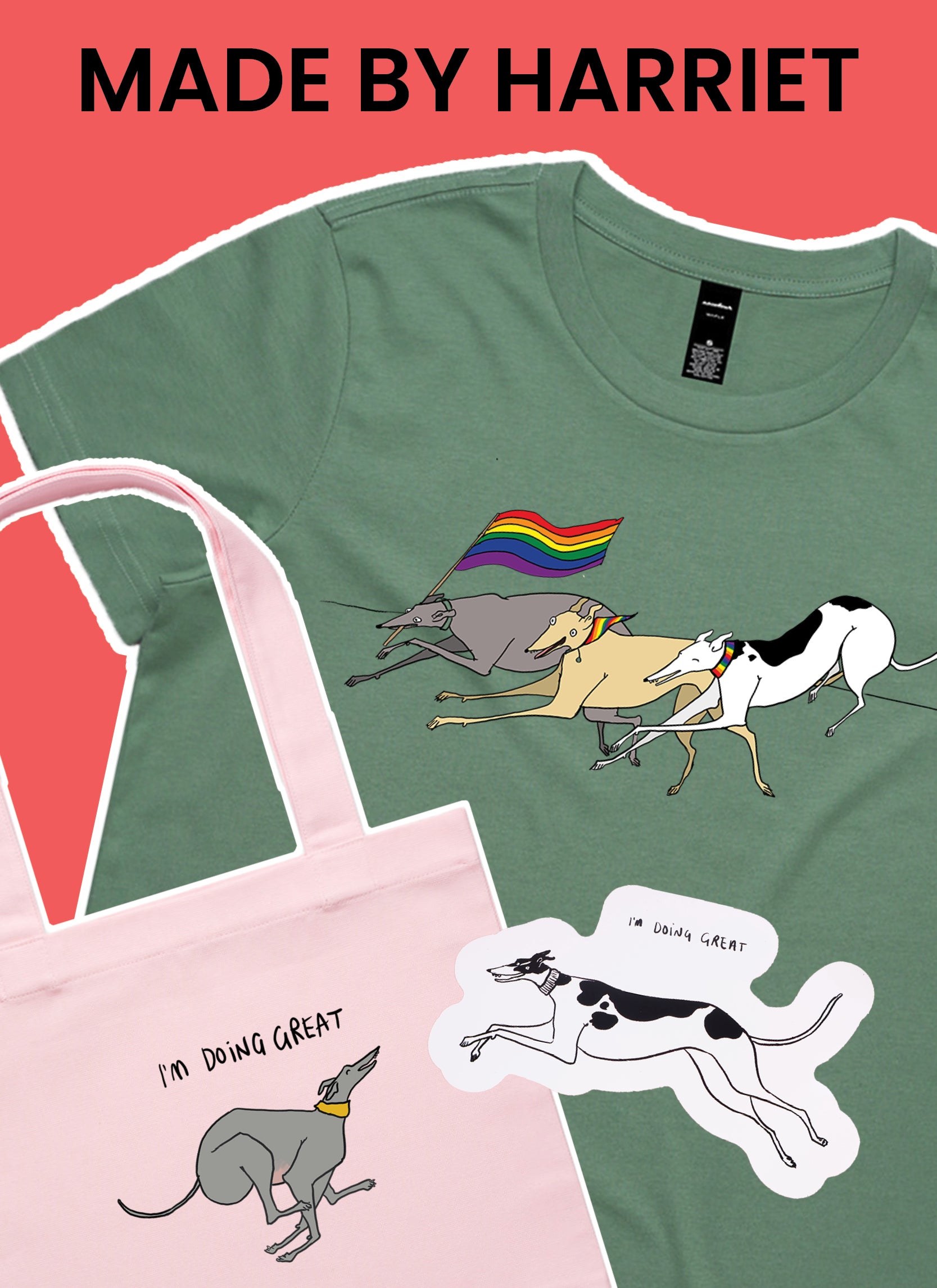 So grab a cuppa, pat the nearest hound, and enjoy our Christmas round-up of gifts, small business love, and how you can open your home to a greyhound who needs one this holiday season. ❤️