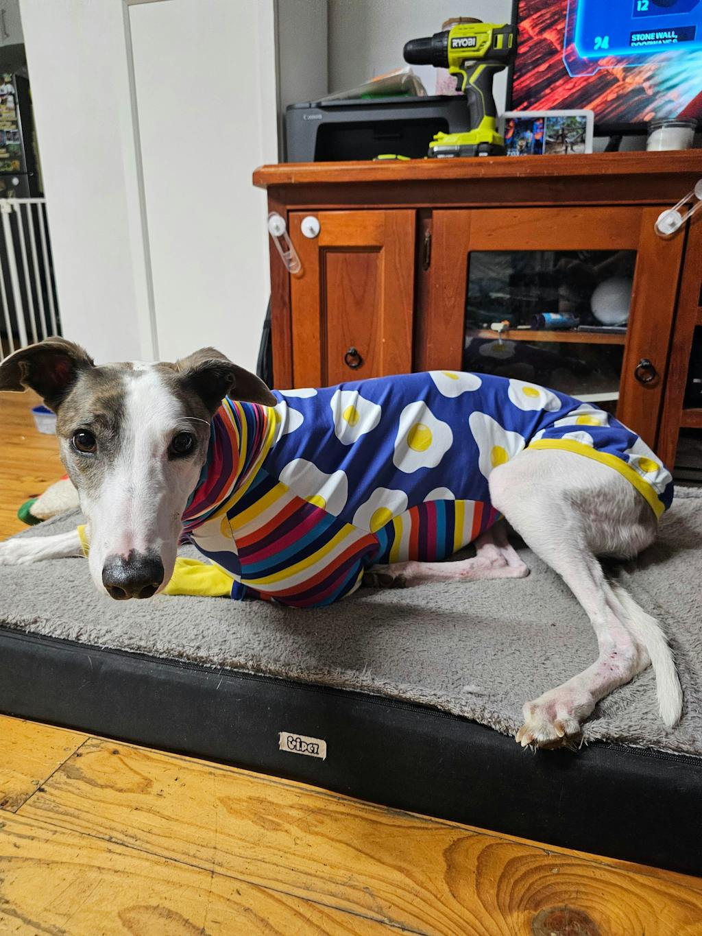 If you're cold, your doggo won't be too far behind. Sighthound's bods do run at a higher base temp than hoomans, so they should typically feel warm to your touch.