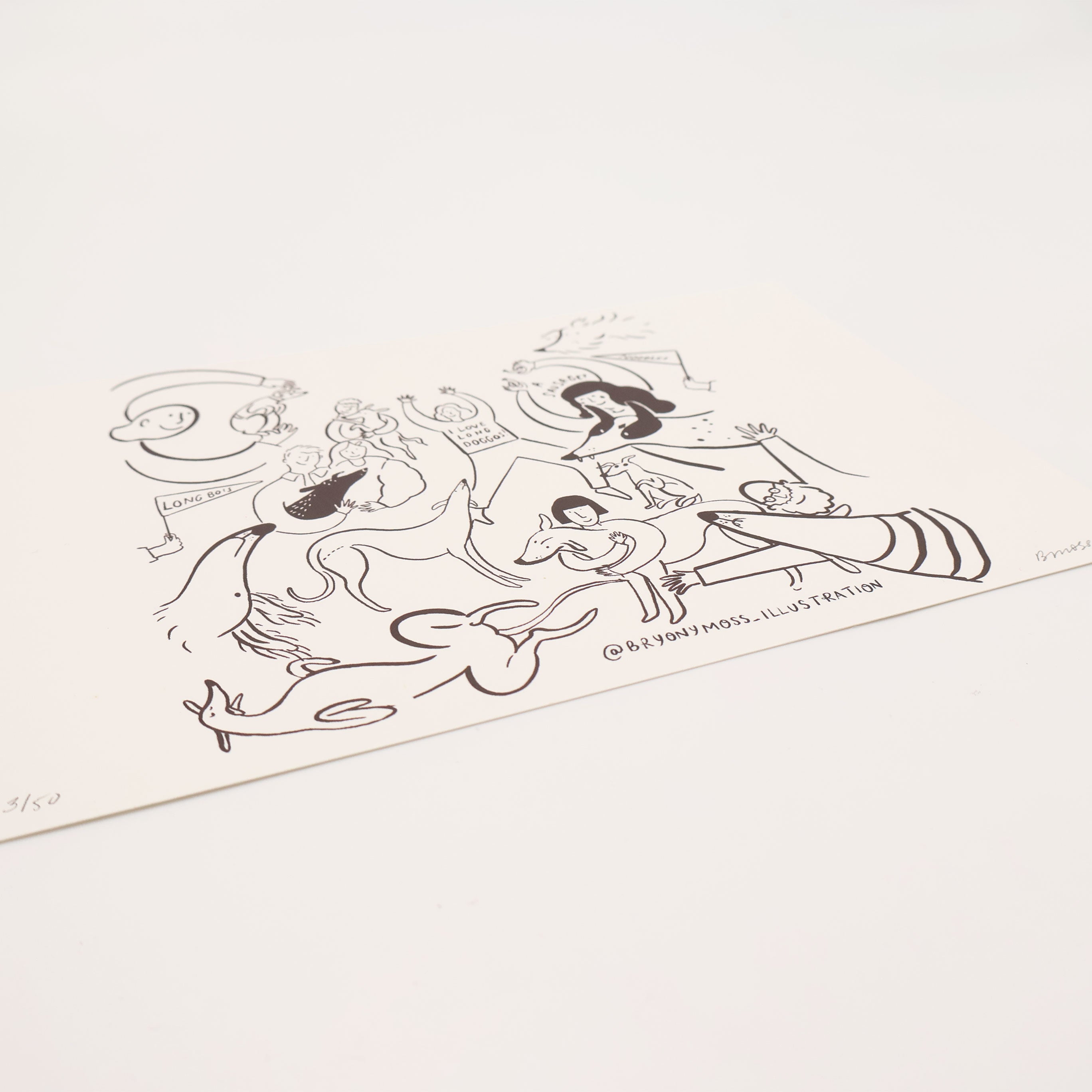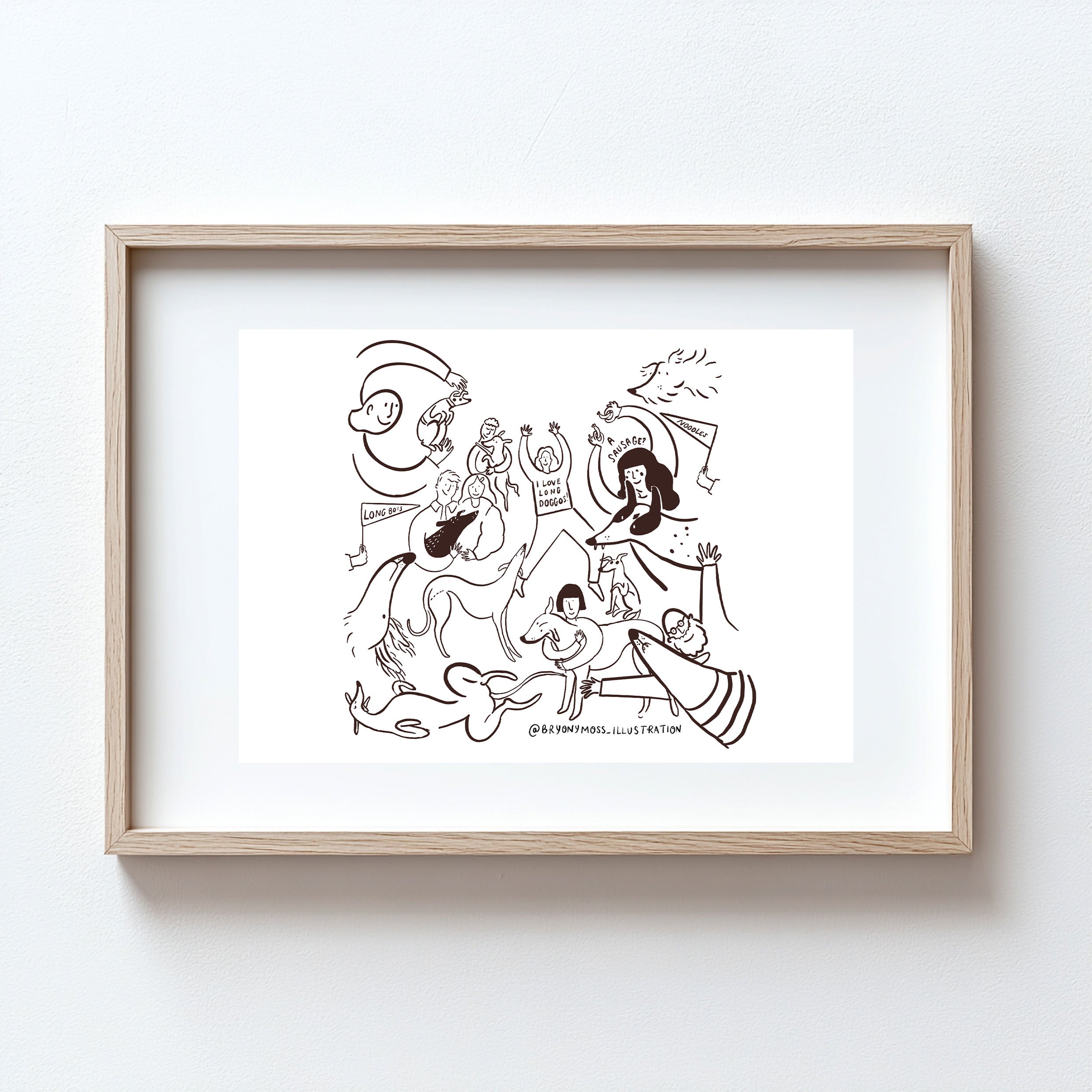 - Gently push down your snoot’s head and swiftly peel the Hound-Tee down over their head.