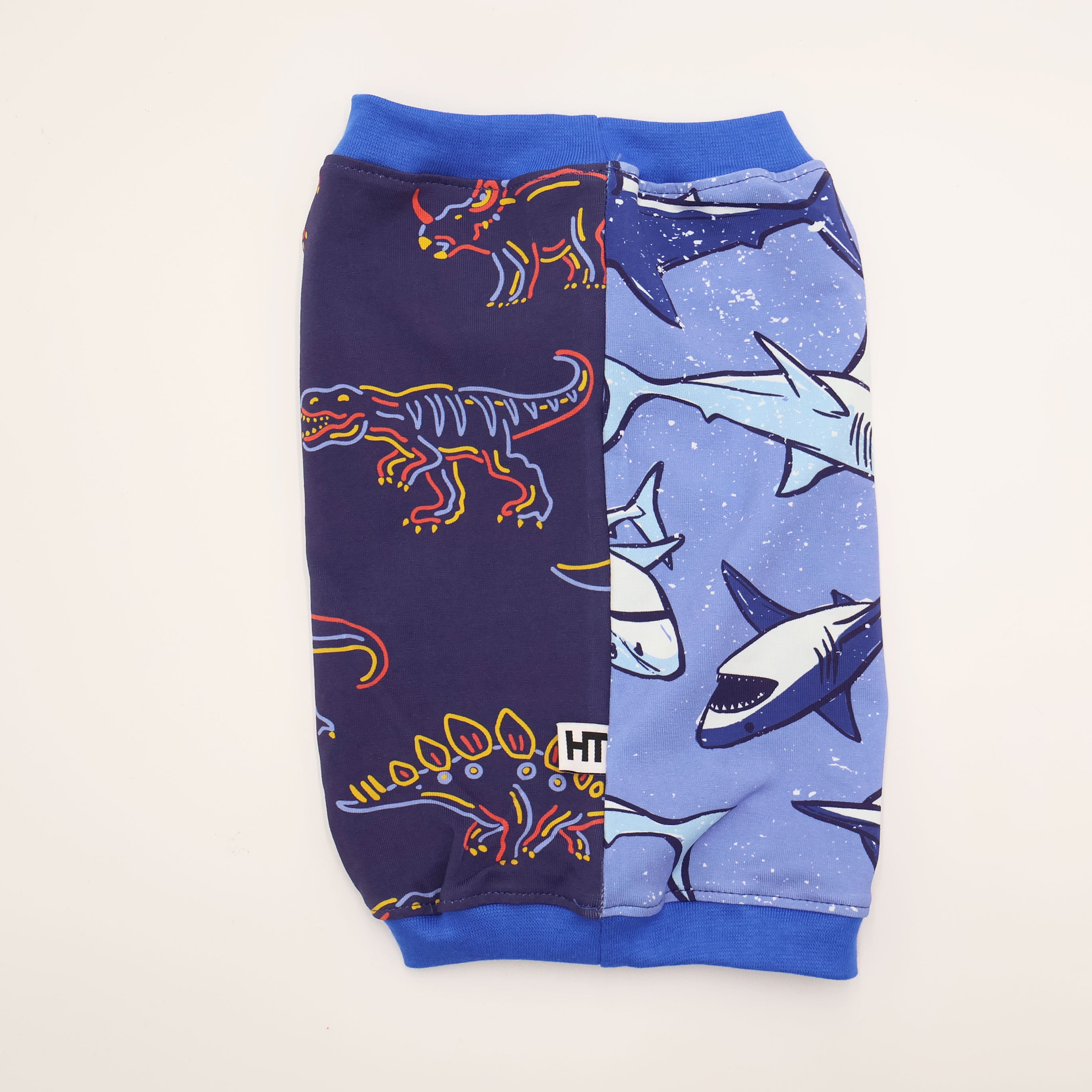 Colour: HALF Blue Dinosaur print and HALF Blue shark print