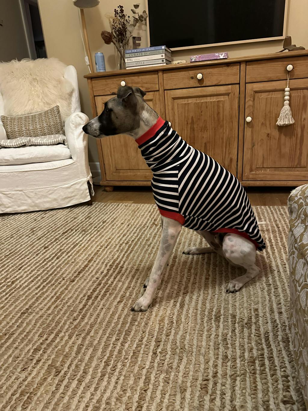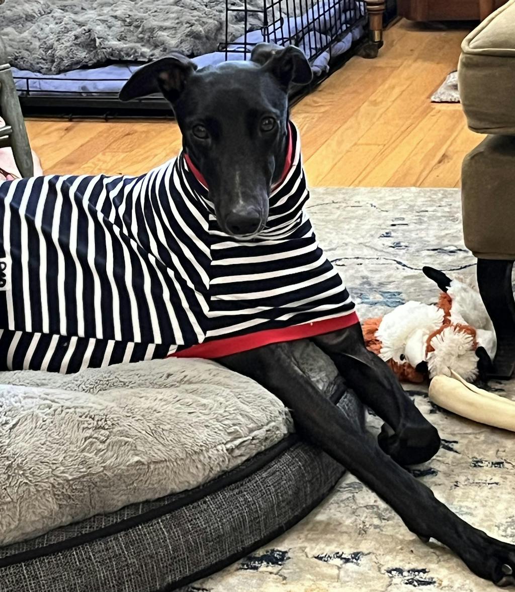 If you're cold, your doggo won't be too far behind. Sighthound's bods do run at a higher base temp than hoomans, so they should typically feel warm to your touch.