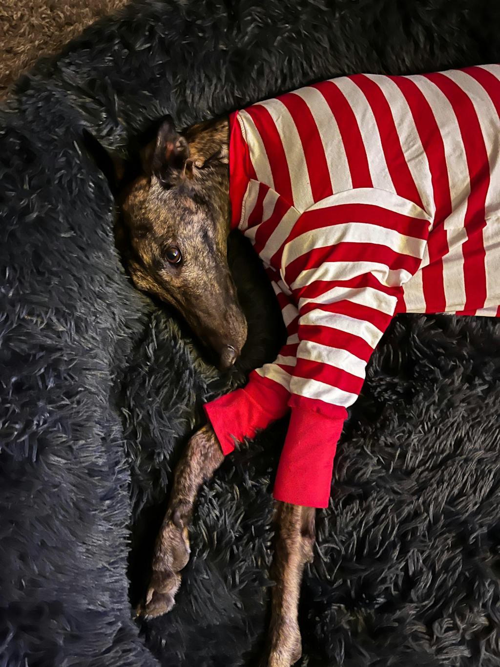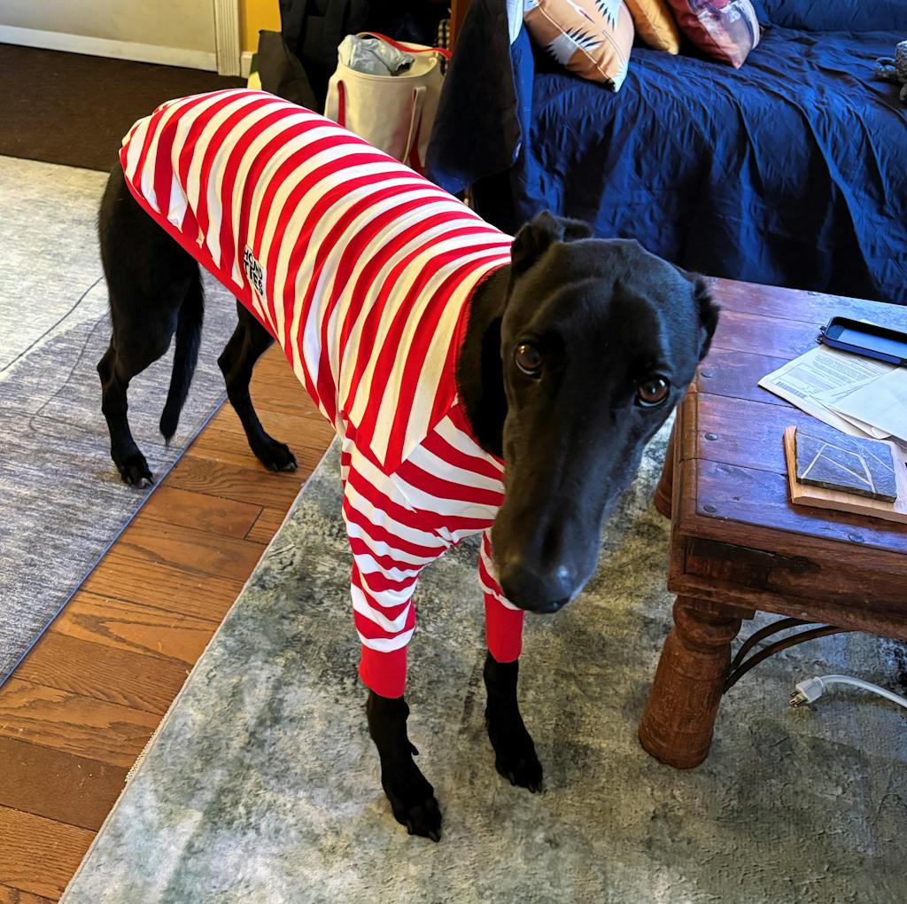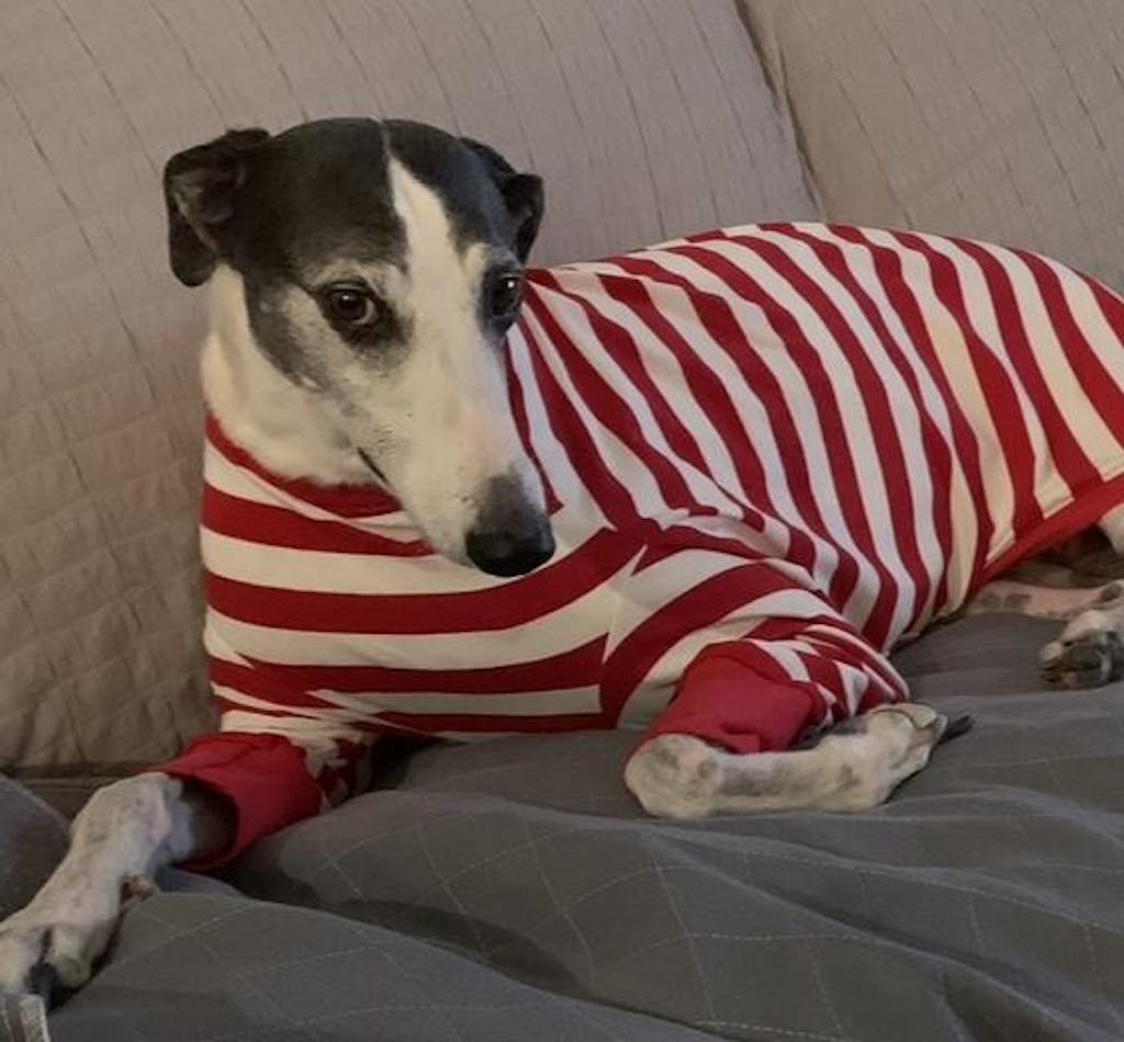 If you're cold, your doggo won't be too far behind. Sighthound's bods do run at a higher base temp than hoomans, so they should typically feel warm to your touch.