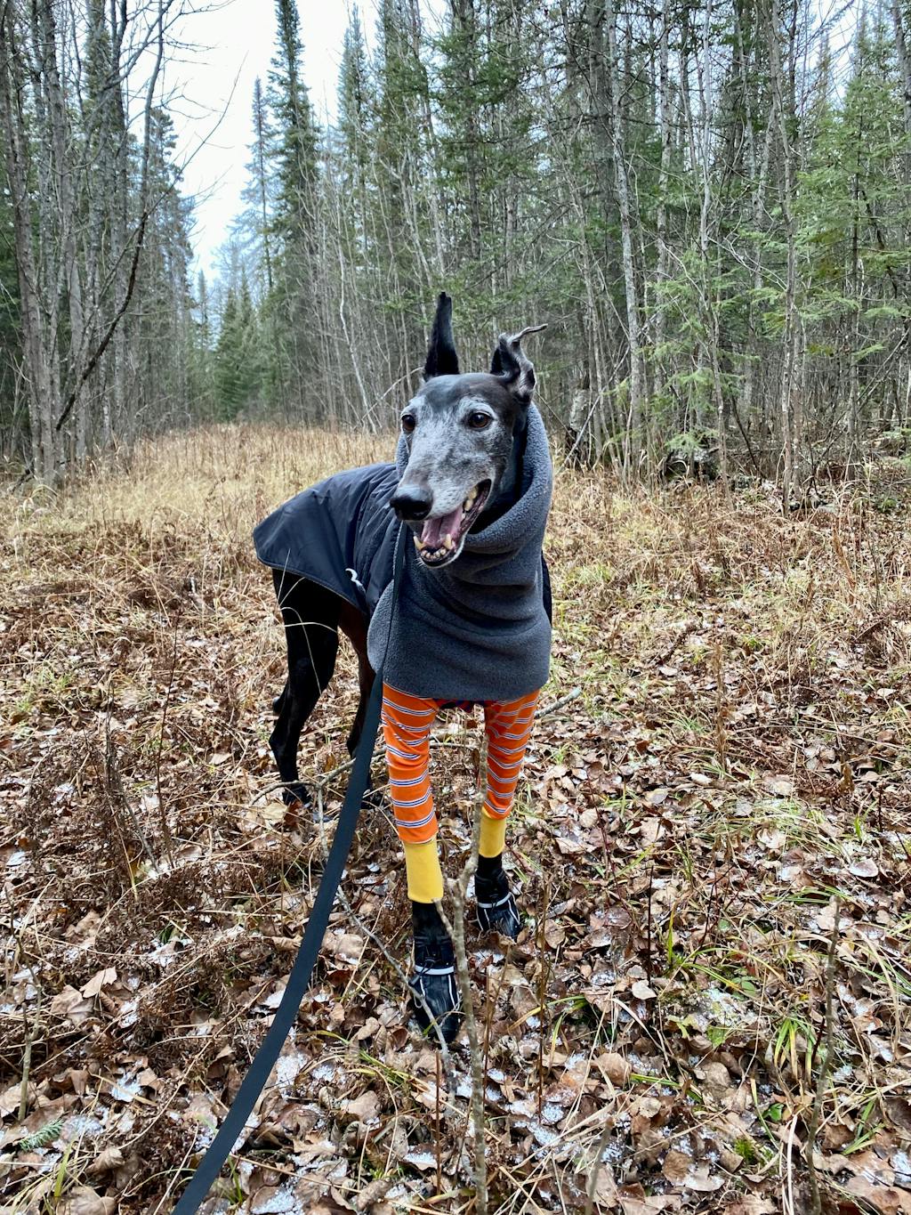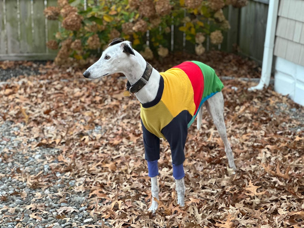 I purchased a few things for my greyhound Louie and I’m obsessed! This is my first time purchasing from HoundTees and I will definitely be making future purchases. I ordered the Frankie Long Johns, Frankie Jester sweater and Friends of Hound snood. Everything is well made and adorable. The materials are soft and Louie is loving them. Ordering process was easy and I love how they pay it forward with some of the proceeds of the snood is donated to Friends of the Hound. I would highly recommend this amazing small business.