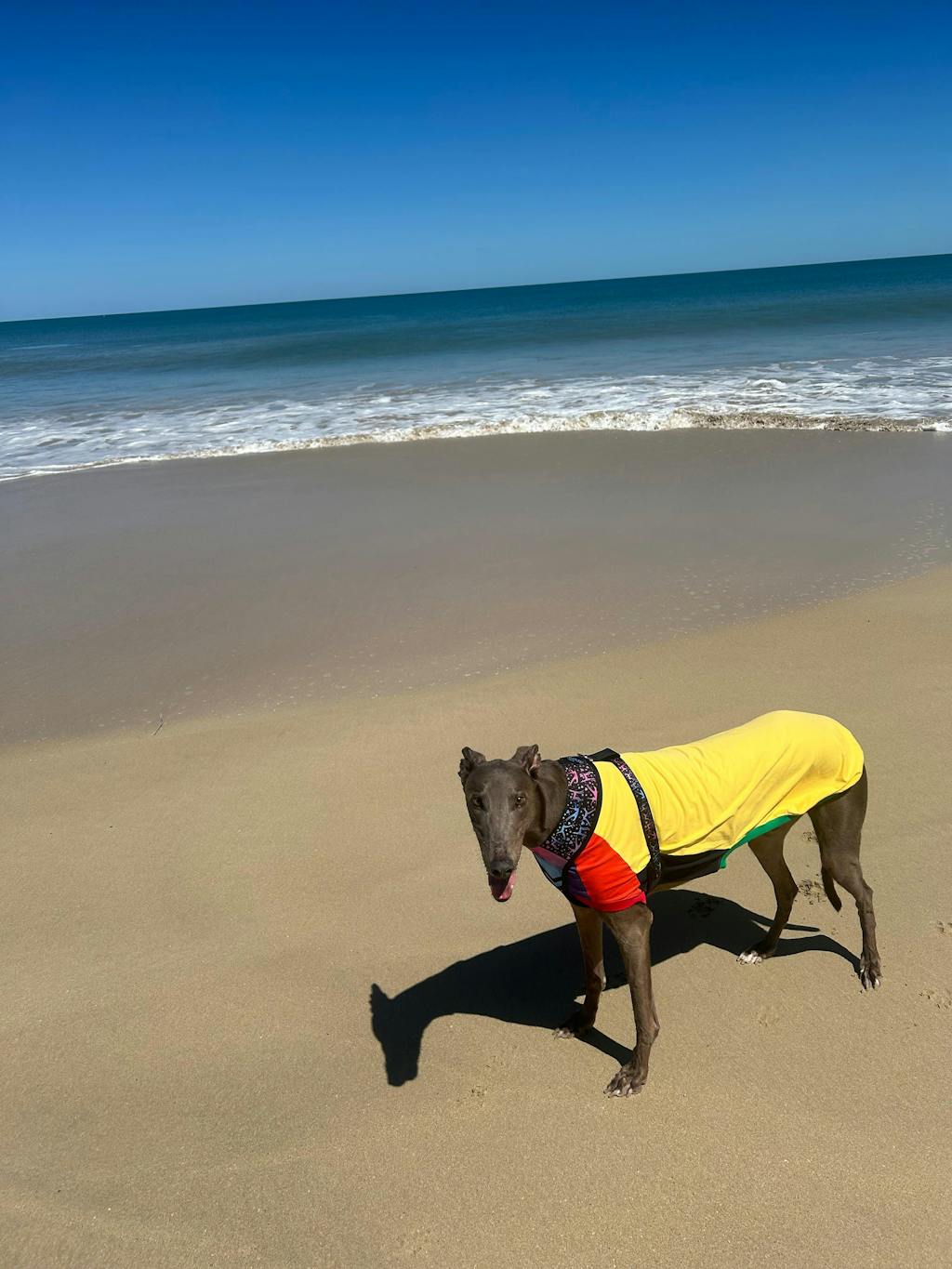 I recently bought our 3rd garment for our Whippet from Houndtees. It is stunning. All of his garments wash and wear beautifully and last very well. I buy bright hi-vis designs to keep track of him 😁 Thanks for your great, speedy service. Cheers Jane.