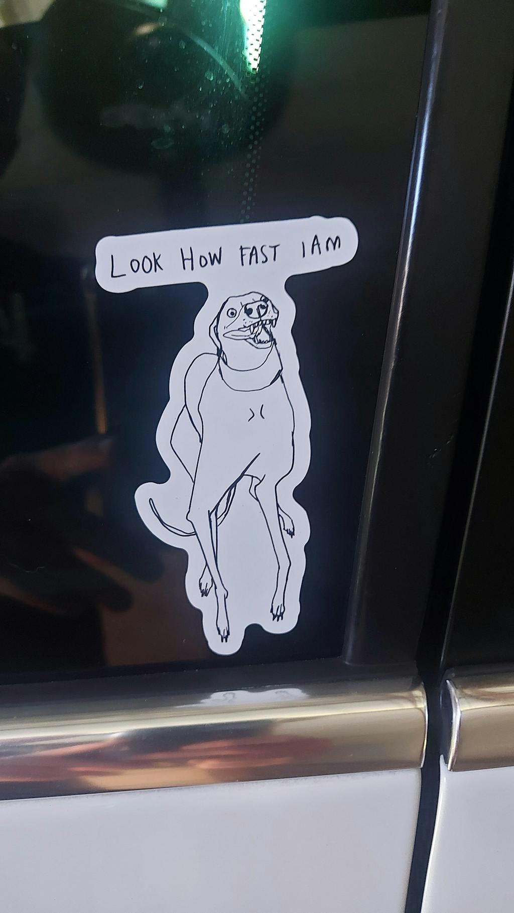 I got the white & the shiny stickers & both look awesome, especially on my fast car, aka the Greyhound Limousine.