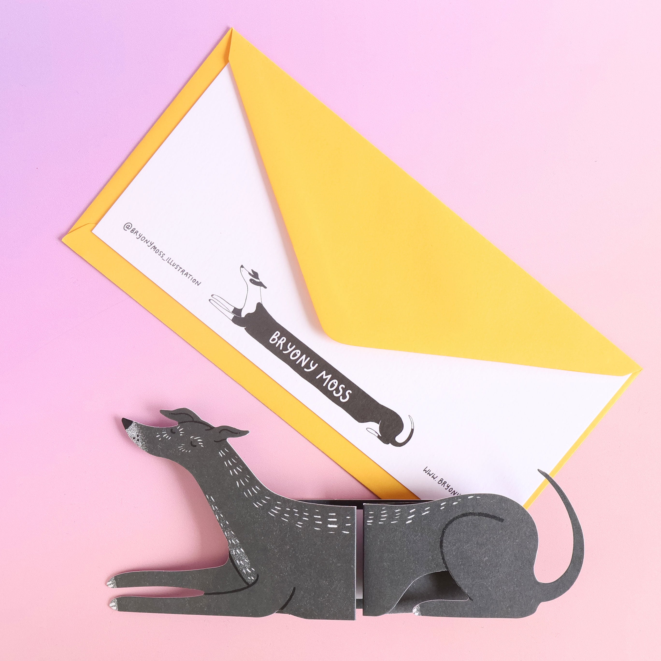 Extending hound shaped card that opens out to reveal an extremely long doggo. This is a ‘Keep Card’, a card to hold on to and treasure.