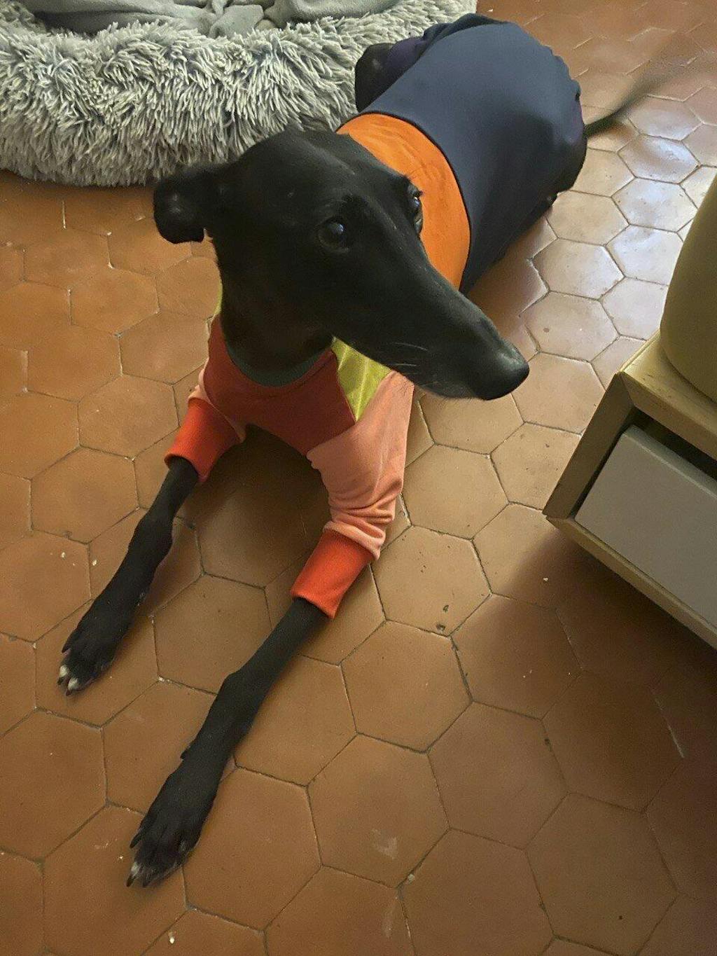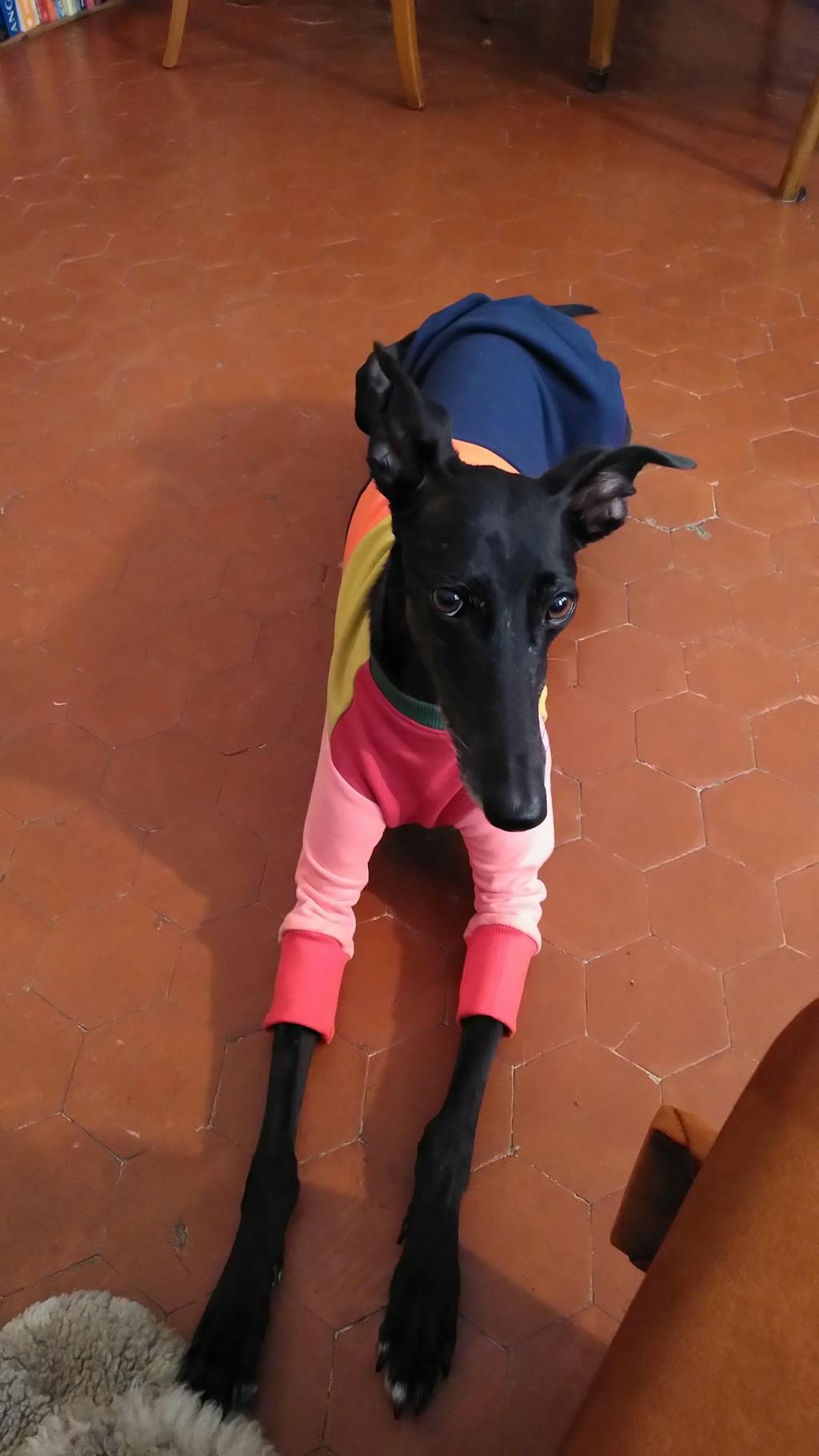 If you're cold, your doggo won't be too far behind. Sighthound's bods do run at a higher base temp than hoomans, so they should typically feel warm to your touch.