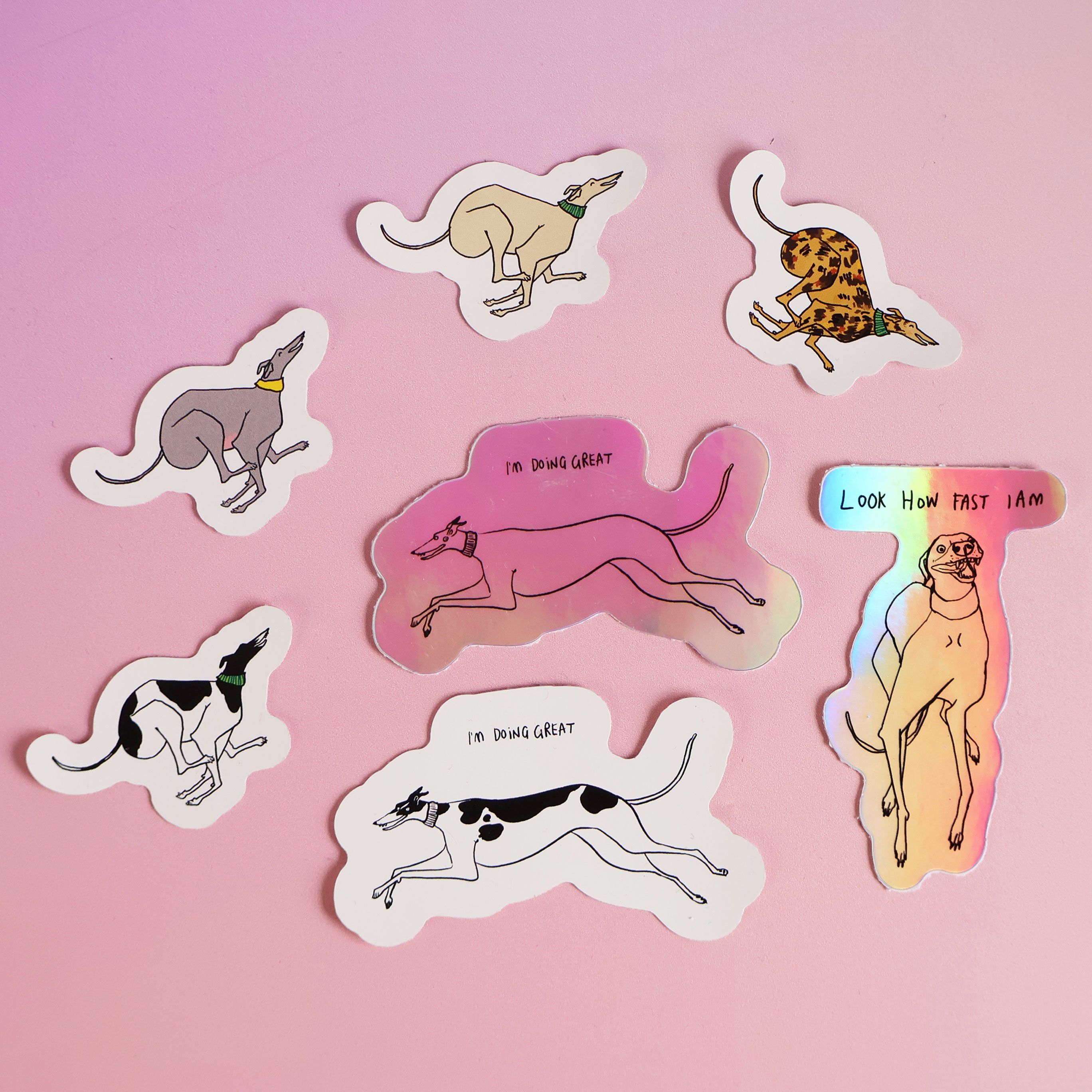 All the Harriet Lowther Look how Fast I am Collection of hounds! 7 stickers per pack including 2 holographic stickers